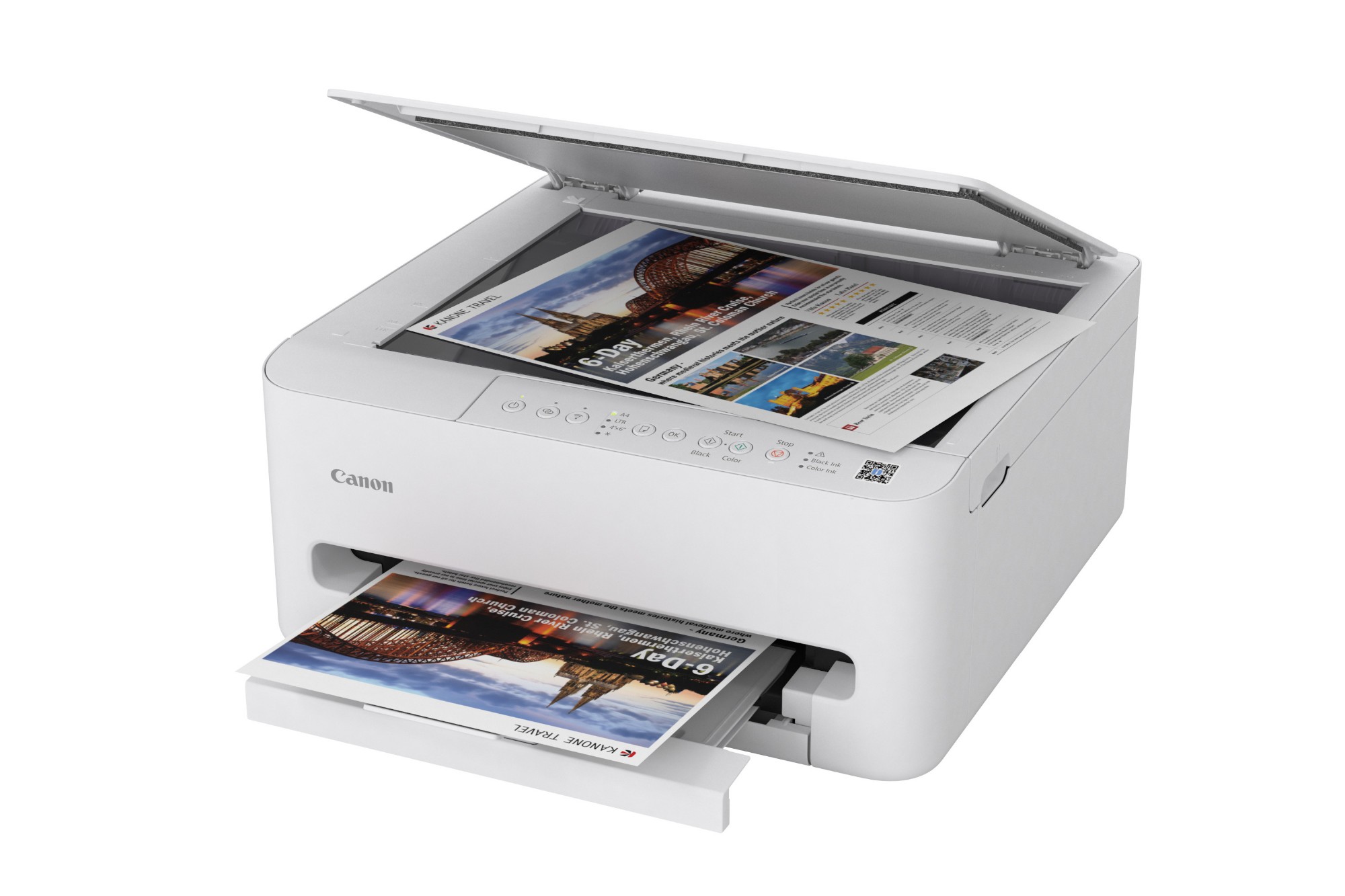 Canon PIXMA TS4150i. Technologie d'impression: Jet d'encre, Impression: Impression couleur, Résolution maximale: 1200 x 1200 DPI. Copier: Copie couleur. Numérisation: Numérisation couleur, Résolution de numérisation optique: 1200 x 2400 DPI. Fonctions recto verso: Impression. Taille de papier de série A ISO maximum: A4. Wifi. Impression directe. Couleur du produit: Blanc