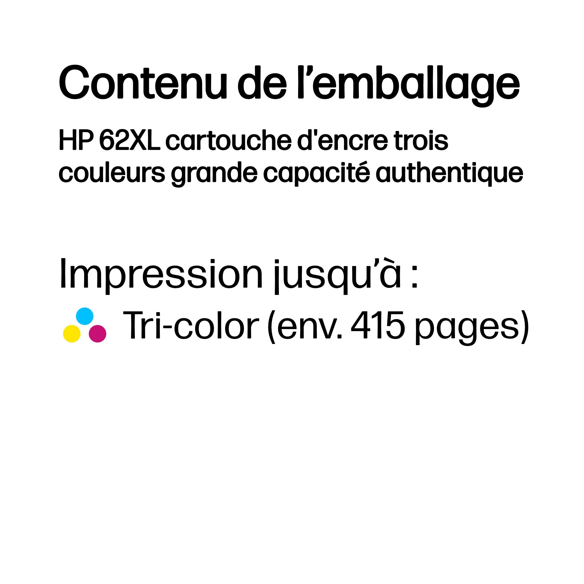HP 62XL cartouche d'encre trois couleurs grande capacité authentique