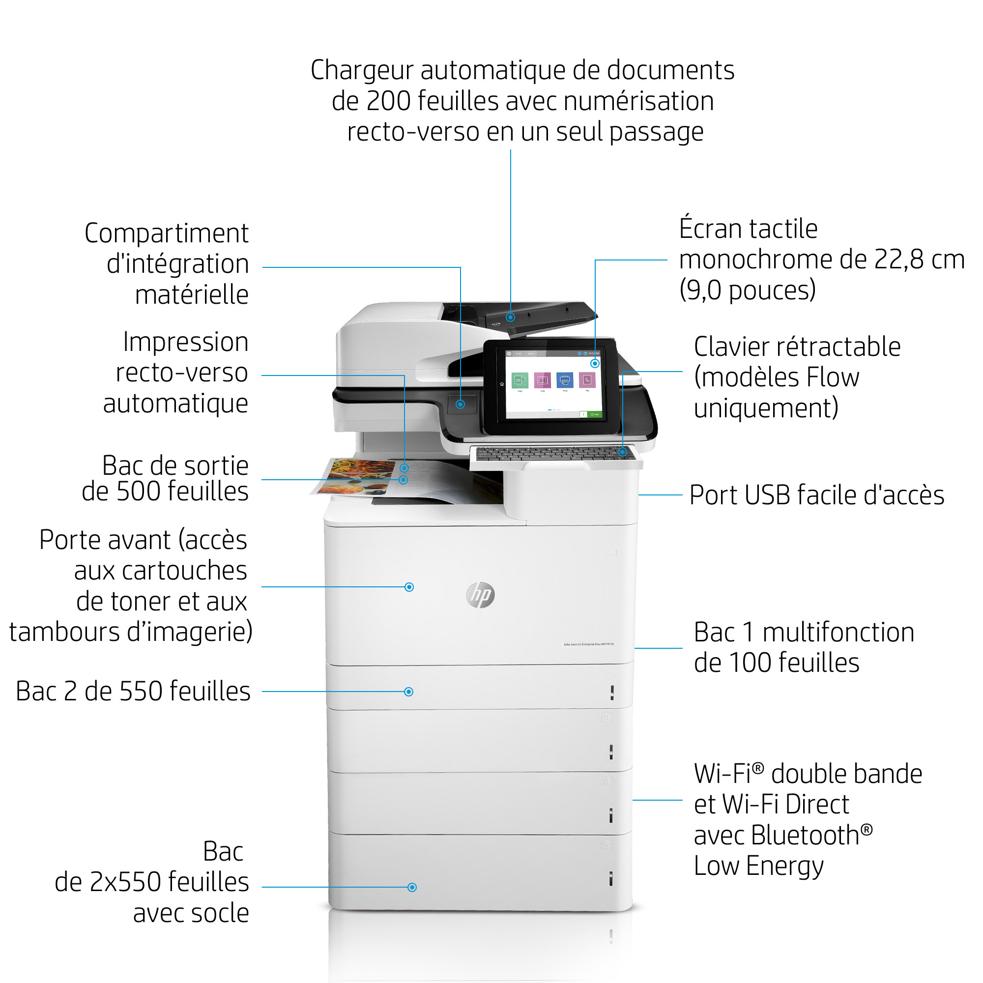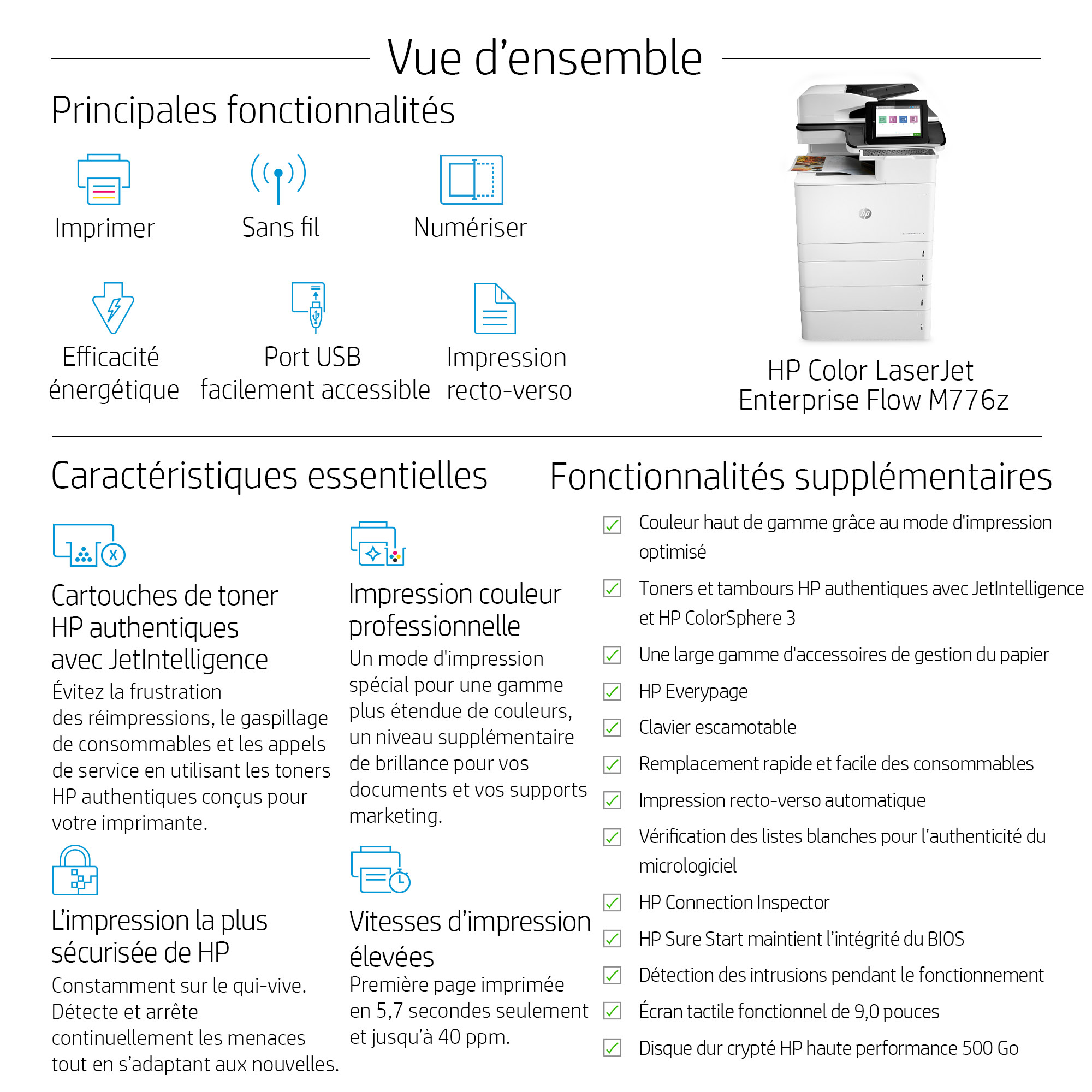 HP Color LaserJet Enterprise Flow LaserJet Enterprise Flow M776z Sans fil Multifunction Couleur Imprimante, Copieur, Scanner; Recto verso