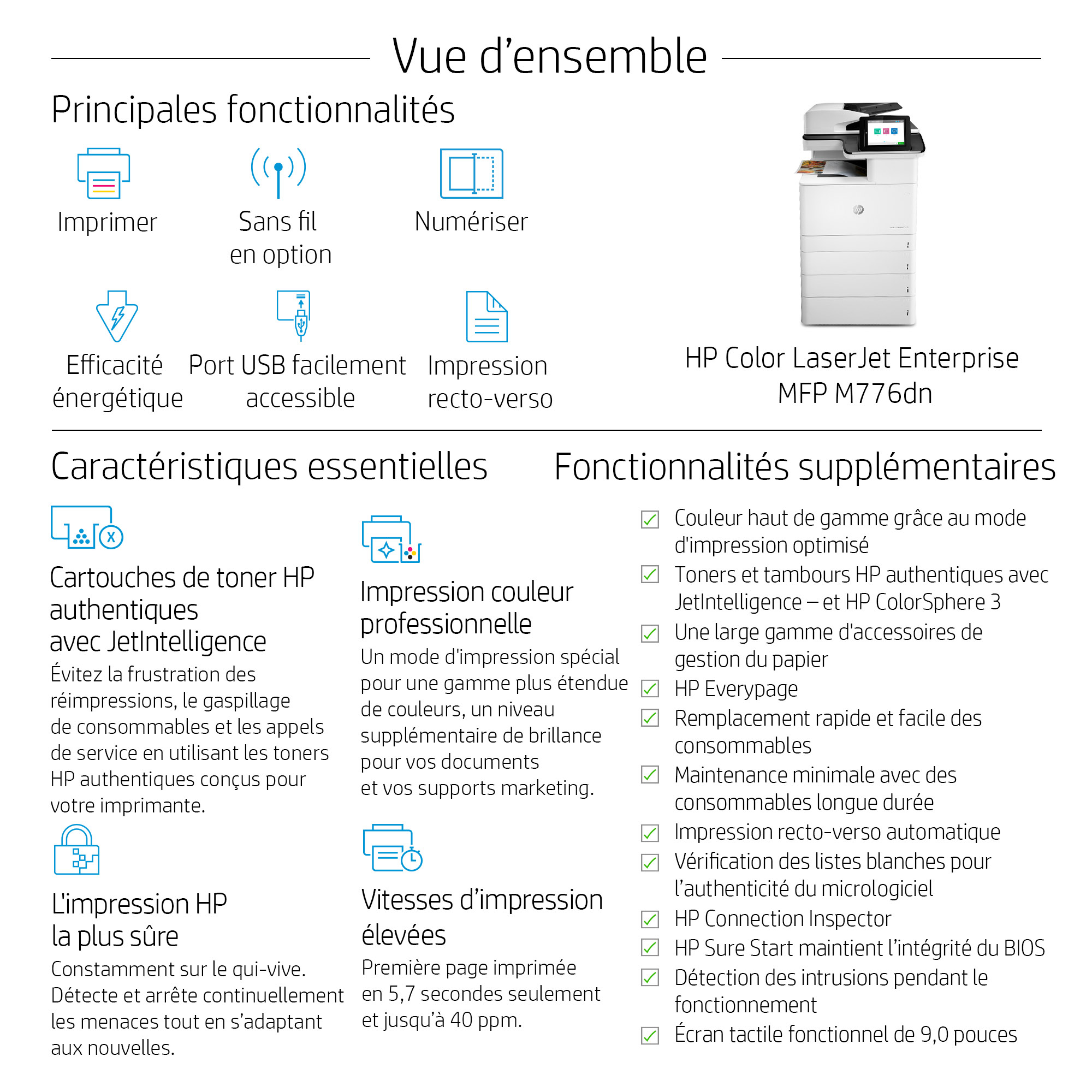 HP Color LaserJet Enterprise LaserJet Enterprise M776dn Multifunction Couleur Imprimante, Ethernet uniquement; Copieur, Scanner