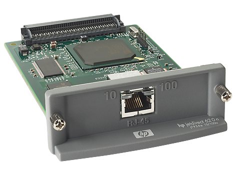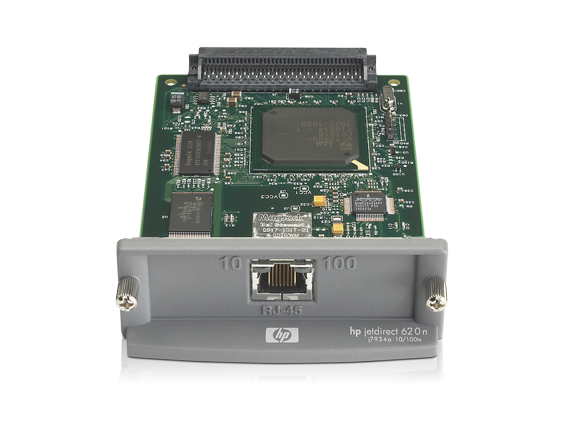 HP Jetdirect 620n. Mémoire interne: 16 Mo, Mémoire flash: 4 Mo. Type de connexion réseau: Ethernet LAN, Standards réseau: IEEE 802.3,IEEE 802.3u, LAN Ethernet : taux de transfert des données: 10,100 Mbit/s. Protocoles réseau pris en charge: TCP/IP, IPX/SPX, AppleTalk, IP Direct Mode, LPD, FTP Printing, IPP, Netware NDS, Bindery, NDPS,.... Largeur: 89 mm, Profondeur: 136 mm, Hauteur: 31 mm