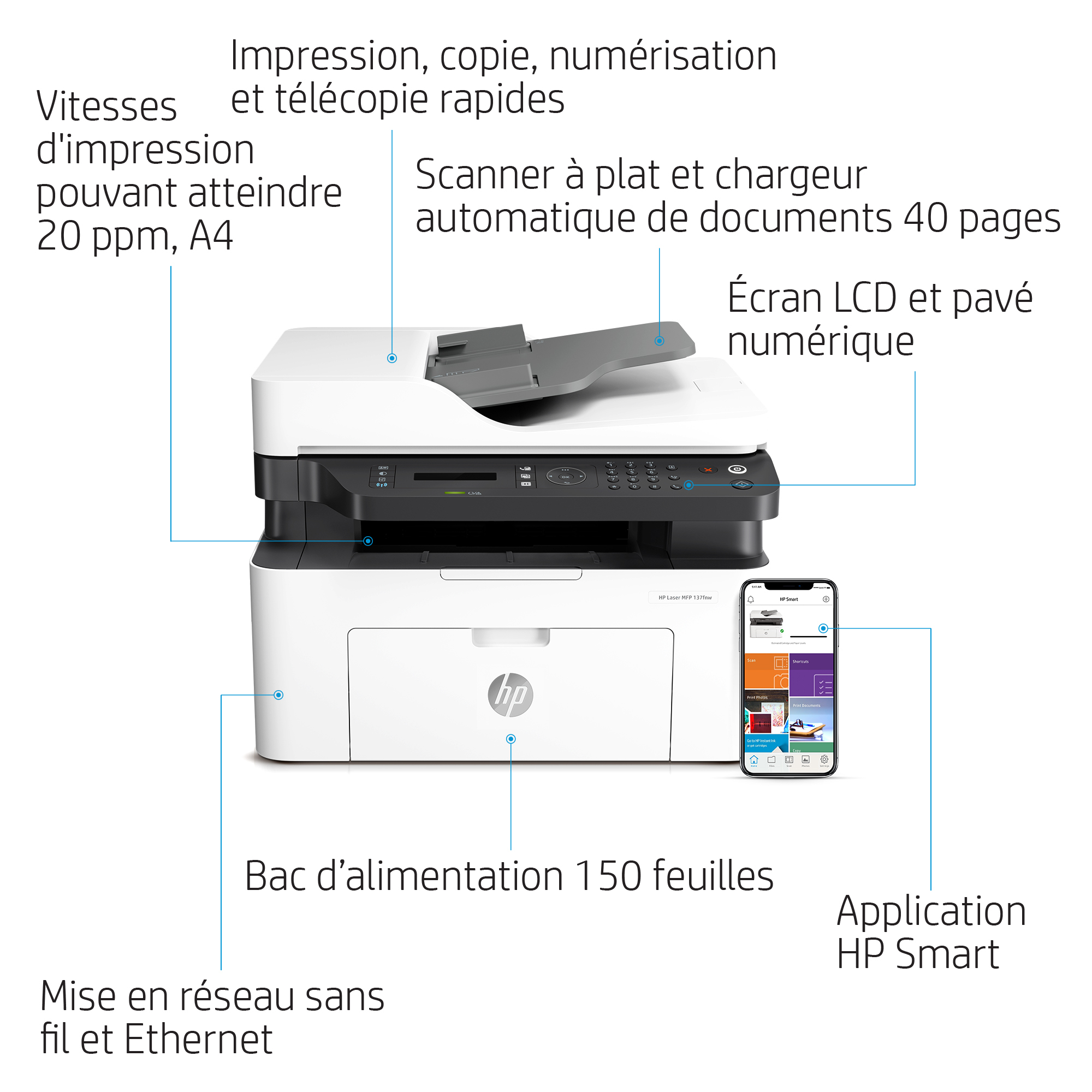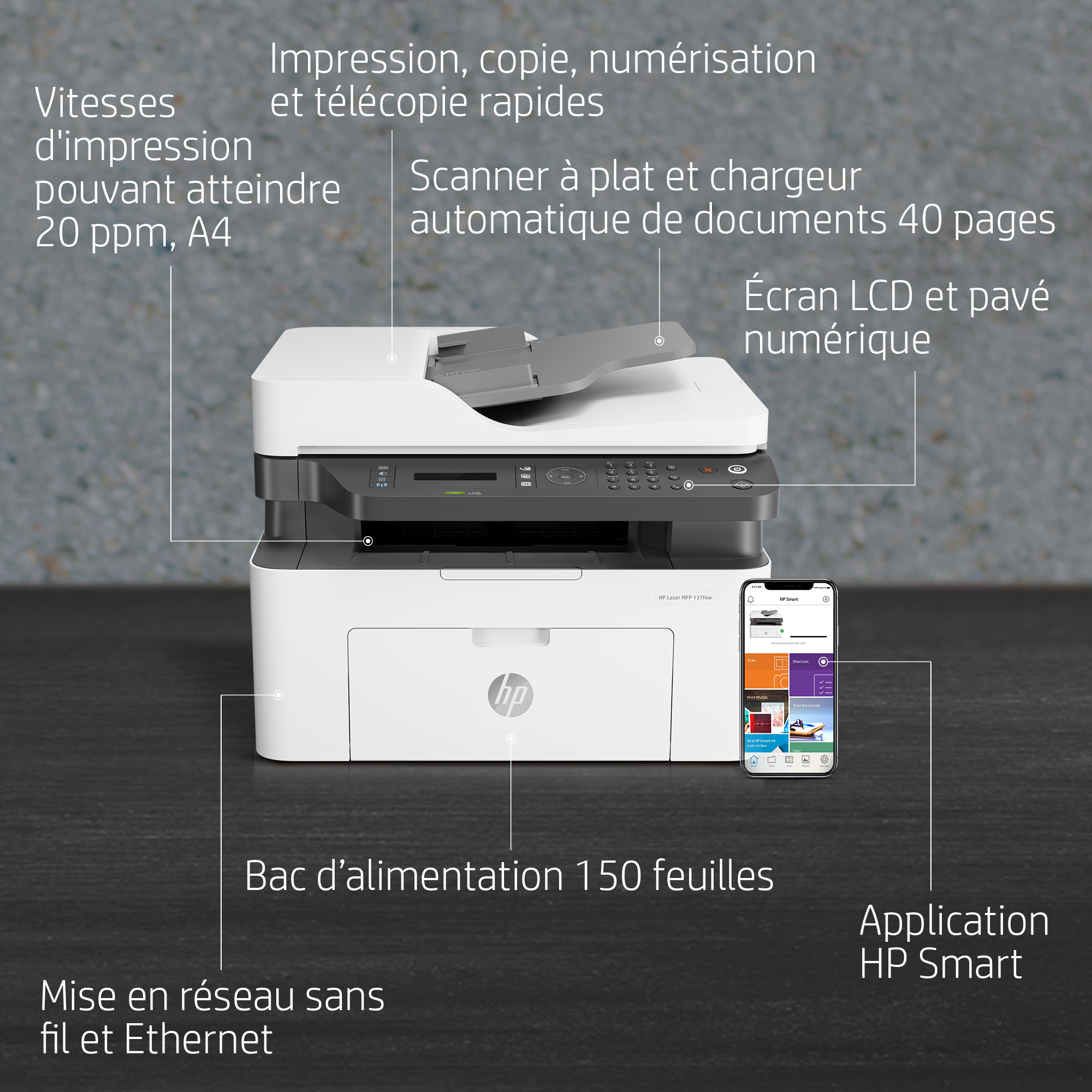 HP Laser 137fnw Sans fil Multifunction Noir et blanc Imprimante, Copieur, Scanner; Recto verso