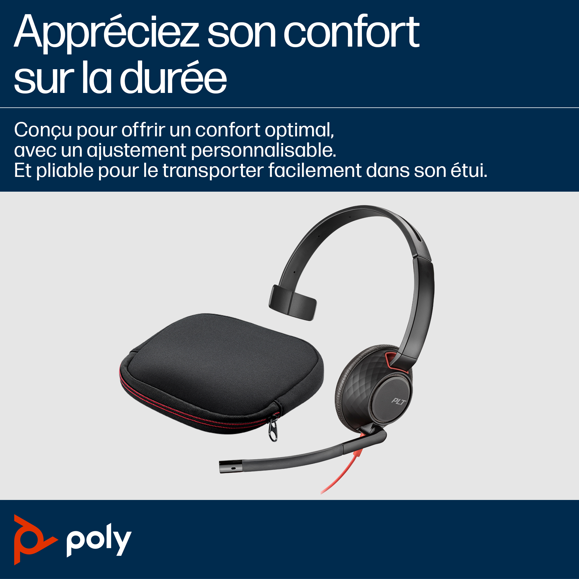 La gamme Blackwire 5200 répond à vos exigences professionnelles. Grâce à sa conception ergonomique, ce micro-casque vous garantit un confort durable. Il vous offre également une connectivité pratique qui vous permet de travailler sur différents appareils tout au long de la journée.
