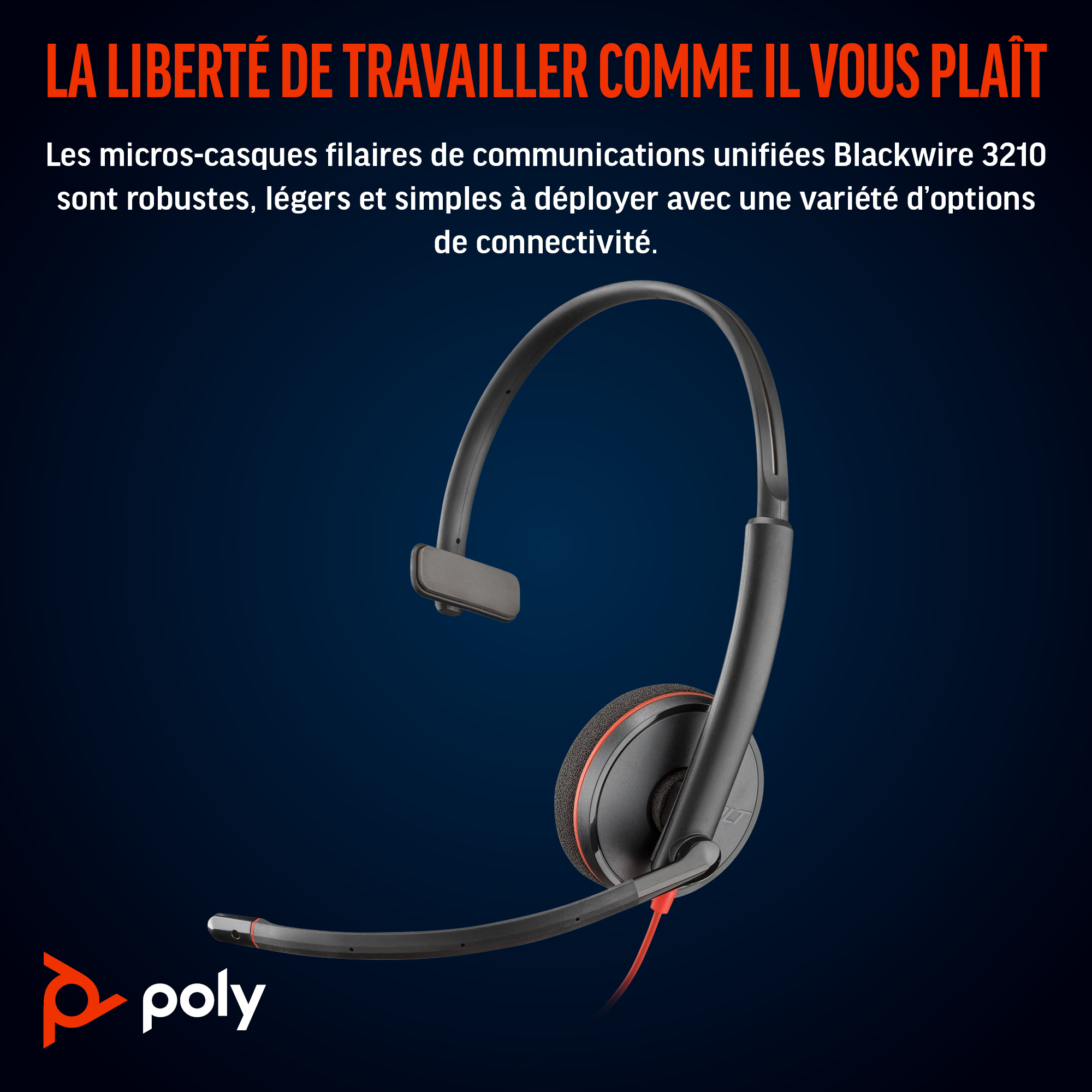 Conçus pour répondre aux besoins de l’entreprise, les micros-casques de la gamme Blackwire 3200 offrent une qualité audio exceptionnelle. Ils arborent un design épuré et une perche de microphone flexible pour personnaliser la façon de les porter. Que demander de plus ?