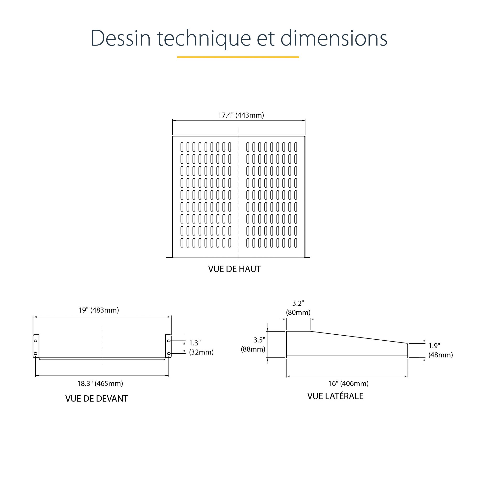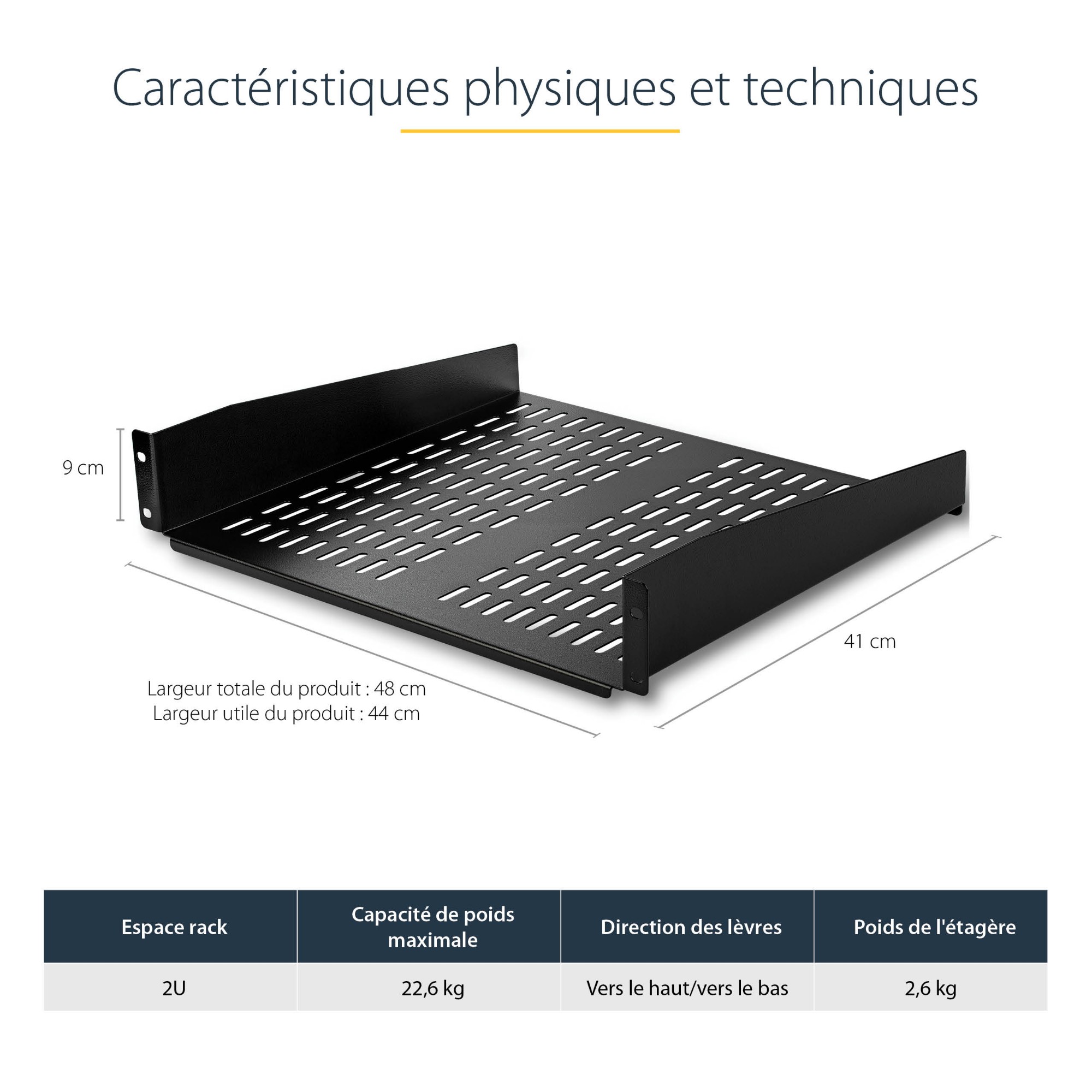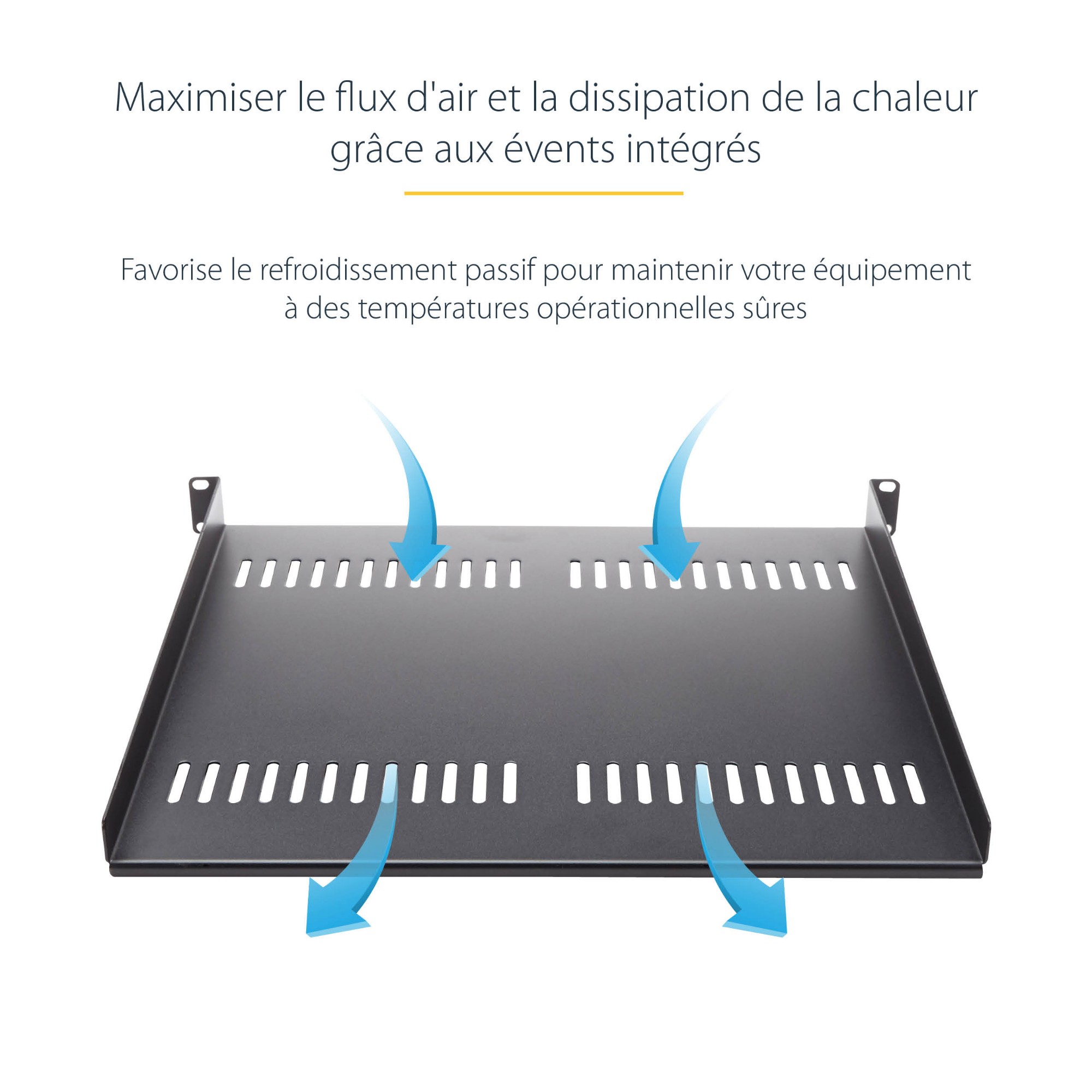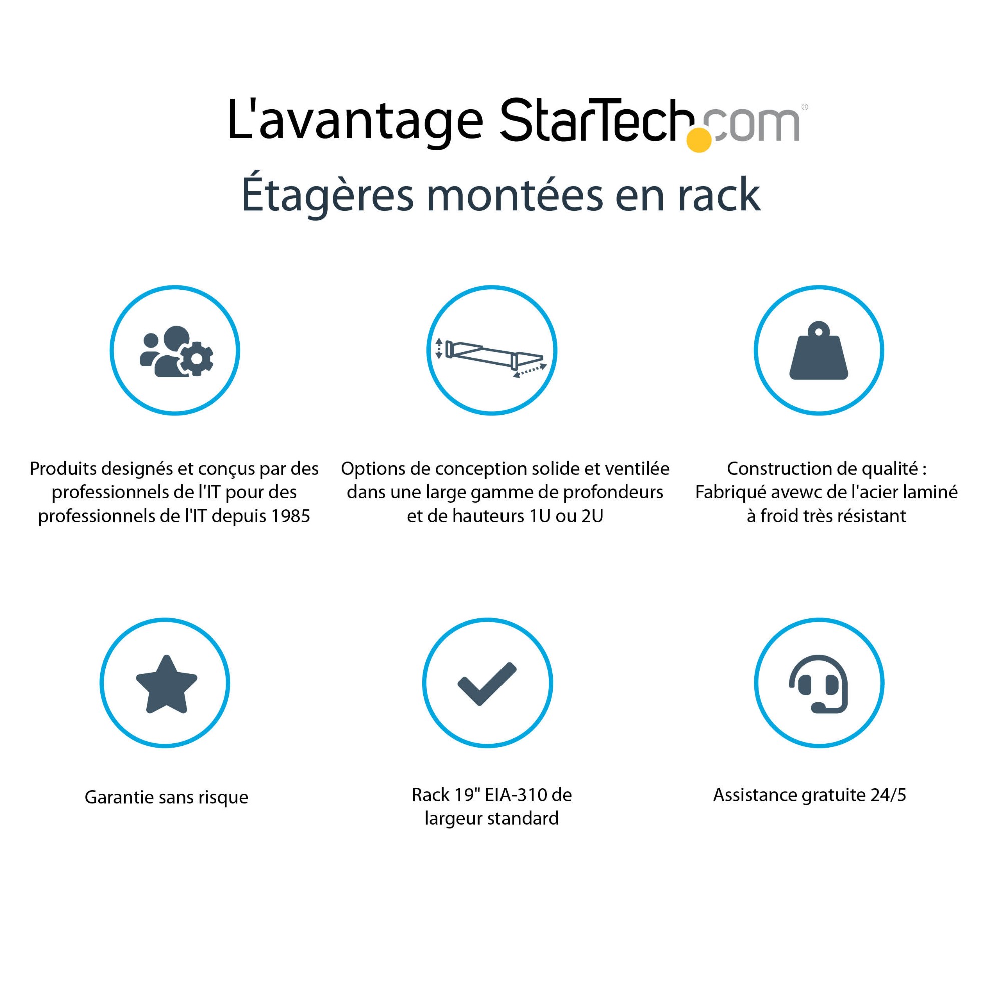 StarTech.com Etagère cantilever ventilée pour rack de serveur universel 2U 16 pouces - Etagère d'armoire serveur fixe - 22 kg